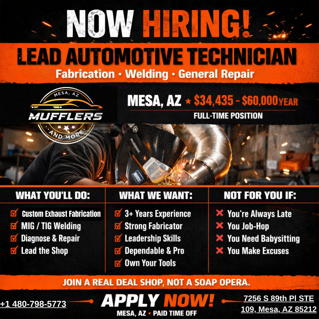 Mufflers & More is the premiere auto repair shop and custom exhaust shop in Mesa Arizona. We do it all from mild to wild. Our professional staff has the knowledge and experience necessary to meet the needs of your vehicle.
